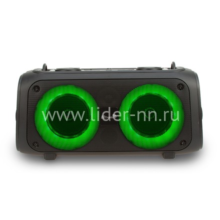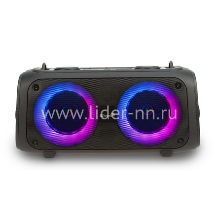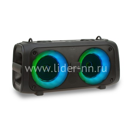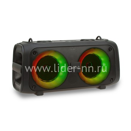 Колонка для музыки с блютузом выполнена в современном, оригинальном дизайне, который понравится молодым людям и подросткам. У нее яркая и привлекающая внимание разноцветная подсветка, которая имеет необычный радужный режим. Режимы можно переключать.