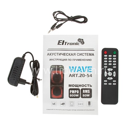 ELTRONIC 20-54 WAVE 800 — это беспроводная музыкальная колонка, которая подойдет и профессиональным музыкантам и любителям громкой музыки. Главное ее преимущество – мобильность. Она не зависит от сети и проводов, это действительно беспроводная музыкальная колонка, за счет встроенного аккумулятора способная воспроизводить музыку, где угодно. При зараженном аккумуляторе она работает до 5 часов без перерыва.