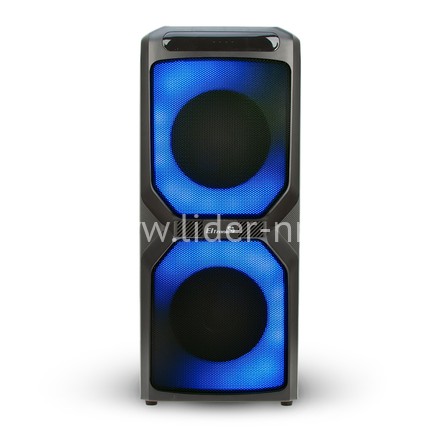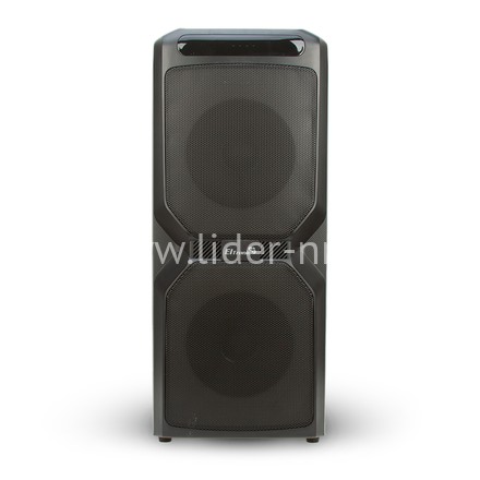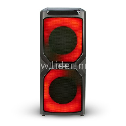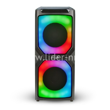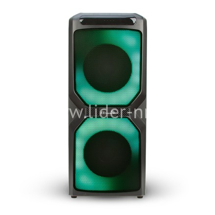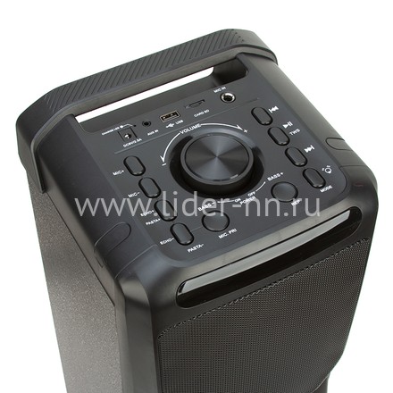 Музыкальная колонка средних размеров, высотой 56 см. С места на место ее можно переносить за удобную ручку. Отличительной особенность именно этой модели является яркая, разноцветная подсветка. Она может работать с нескольких режимах, синхронизируясь по ритму с музыкальной композицией. Есть необычный радужный режим.