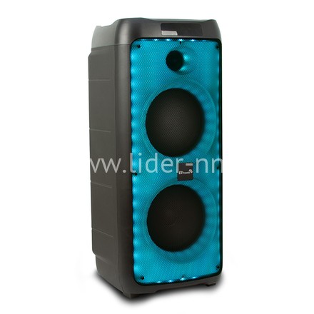 У колонки с блютузом и флешкой два динамика по 8 дюймов и твитер, расположенный над динамиками. Колонка мощная PMPO 800 Ватт и громкая. Она отлично будет звучать в баре, кафе, зале для мероприятий, на конференции, даже на шумной улице ее будет слышно далеко.
