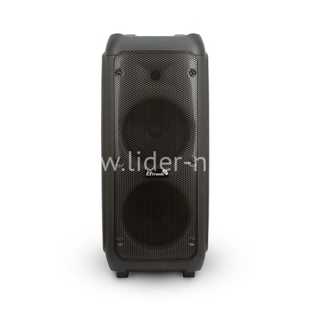На панели управления музыкальной колонки с флешкой ElTRONIC 20-59 DANCE FIRE 500 сразу заметны две больших клавиши громкости. Одна отвечает за микрофон, другая за саму колонку. Есть кнопка переключения композиций, которые отражаются на дисплее, есть точнейшая регулировка звука с помощью эквалайзера, а также настройка высоких и низких частот. За воспроизведение звука отвечает два динамика по 8 дюймов и твитер. Звучание по частотным характеристикам вполне достойное, звук не плоский и не зажатый.