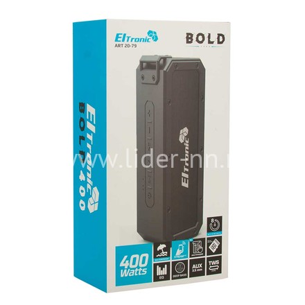 ELTRONIC BOLD 20-79 – это беспроводная черная колонка, которая в разрезе действительно немного напоминает болт, такая мужская и брутальная. Это новая модель бренда ELTRONIC, который выпустил линейку беспроводных колонок небольшого размера. Непосредственно эта модель имеет ширину 21 см, высоту 8 см и глубину 6 см. Довольно компактная беспроводная черная колонка, которая может разместиться в любом рюкзаке.