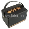 От ретро-дизайна у блютуз колонки для дома есть еще плотная оплетка, закрывающая динамики, золотая пластина с панелью управления и ручками под старину, а также ремень для переноски, выполненный из того же материала, что и корпус колонки. Еще в комплектацию блютуз колонки для дома входит блок питания и инструкция на русском языке.